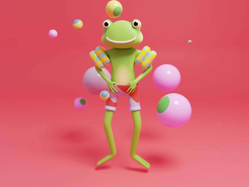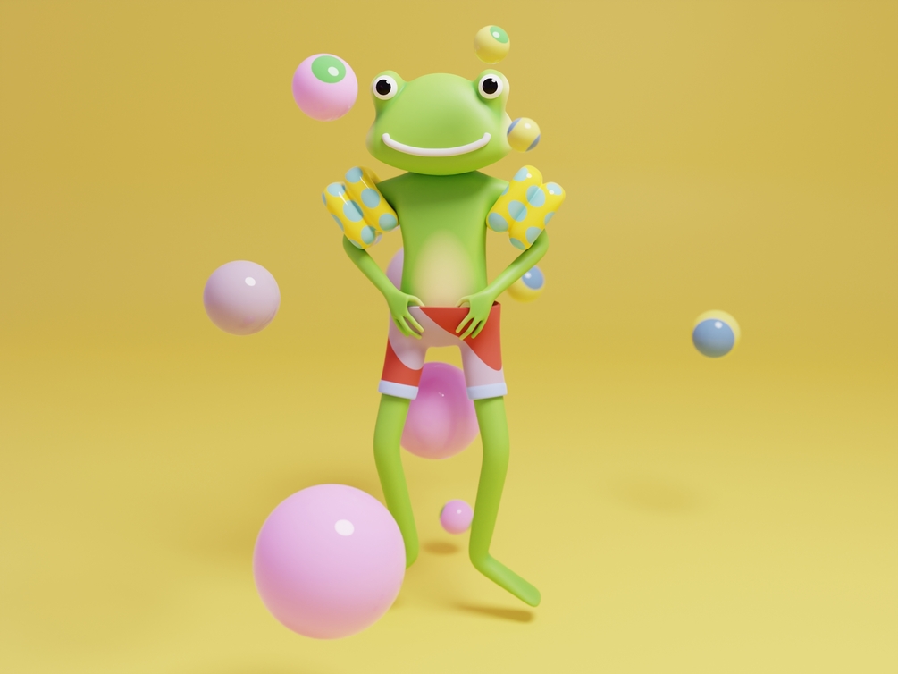 A 3D model for Blender of a frog. It's a stylized character suitable for websites, illustrations, etc.
